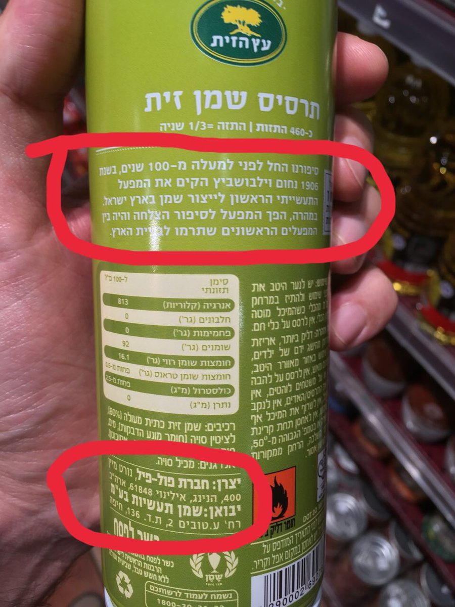 באמת סיפור יפה, ואני אתמצת לכם אותו: אנחנו המפעל הראשון שהוקם לייצור שמן בארץ ישראל ולכן אנחנו מייבאים אותו מאילינוי.pic.twitter.com/8iyhId0Nfp