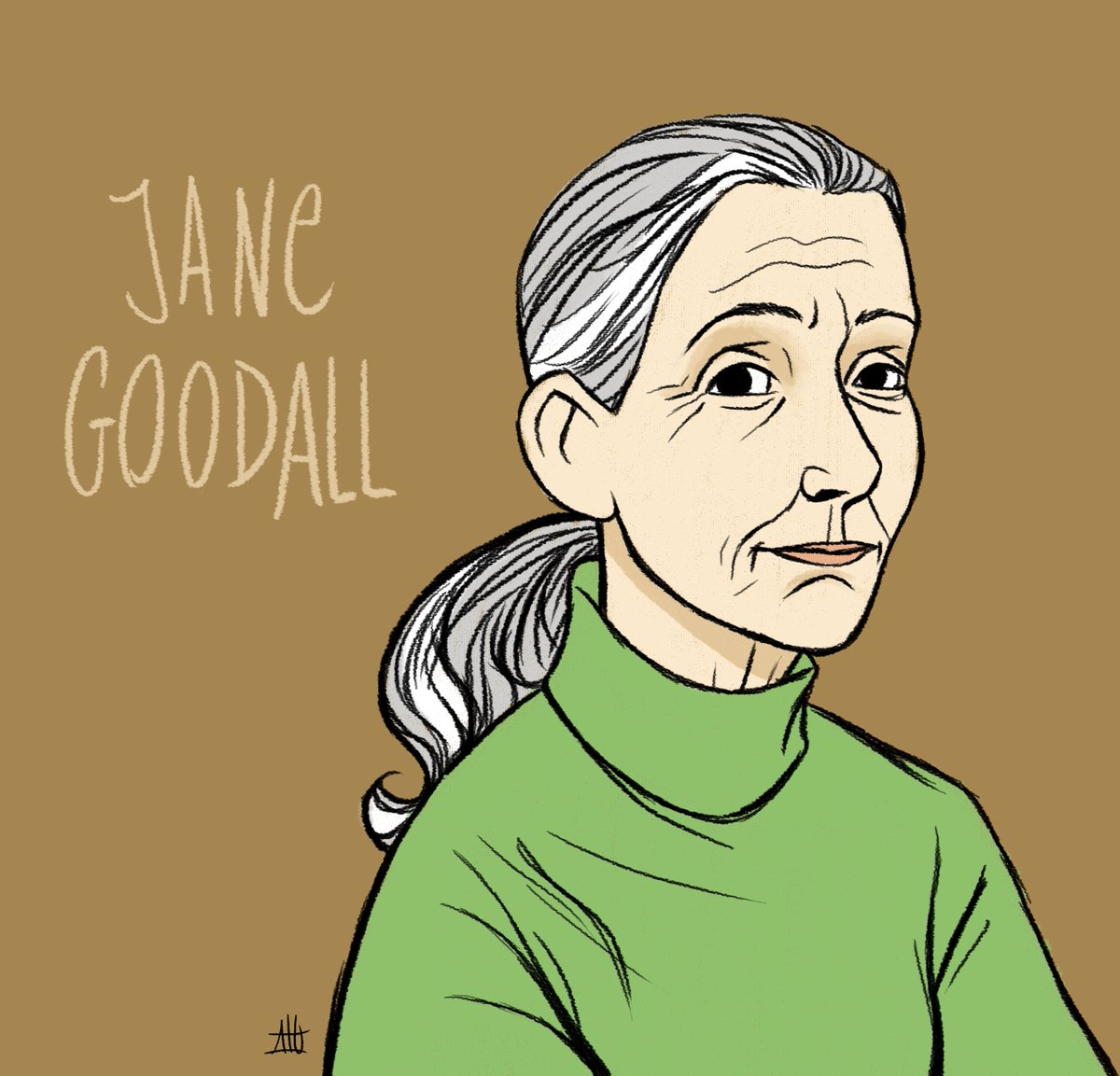 Jane Goodall () has done "exceptionally detailed" long-term research on chimpanzees.