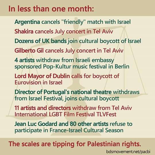 As more celebrities and public figures follow their conscience and stand with our struggle for freedom, justice and equality, the scales are tipping for Palestinian rights. Via