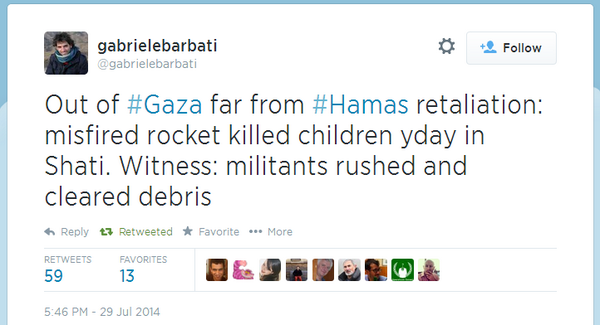 Italian reporter says Hamas rocket killed children in . Hamas cleared the evidence: