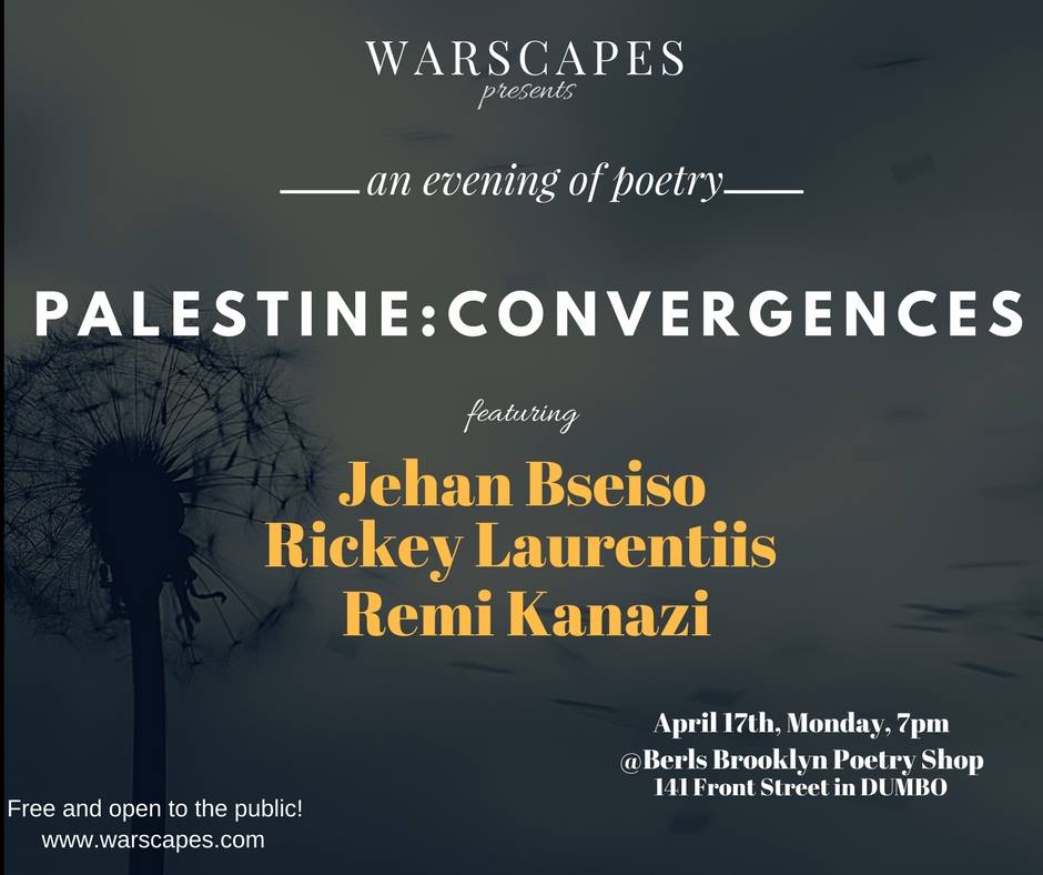 If you're in New York on April 17th I strongly urge you to go to this. Palestine: Convergences. An evening of poetry.