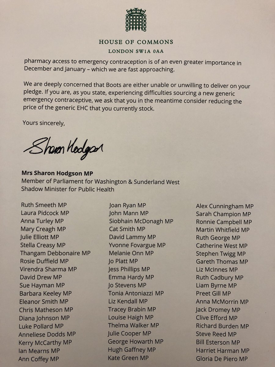 @UKLabour MPs have written to@BootsUK re the failure to roll out their cheaper emergency contraception by October, as promised earlier in the year. This must be addressed quickly as we enter the festive period!pic.twitter.com/QEphEYWagg