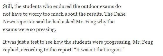 CHINA'S outdoor exams: not sure which more starting: they went ahead in smog or tests held outside in freezing coldhttp://www.nytimes.com/2016/12/21/world/asia/china-smog-exam-pupils.html …