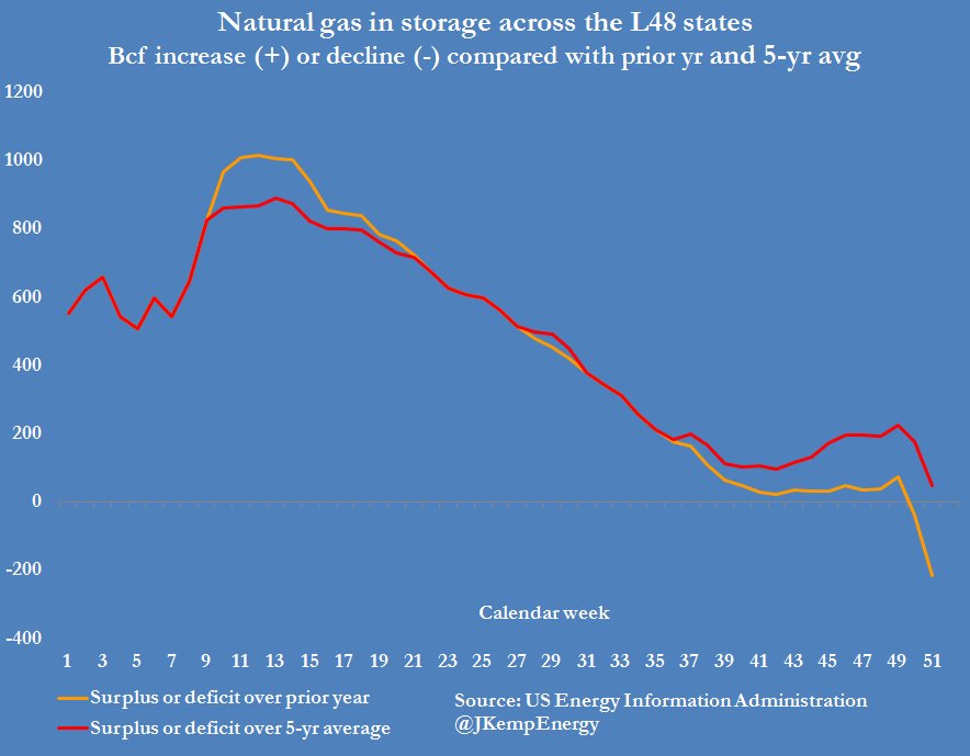 U.S. GAS MARKET has rebalanced despite warmer than normal start to heating season, excess stocks eliminated, underlying power burn is strongpic.twitter.com/9SxYfKkAYl