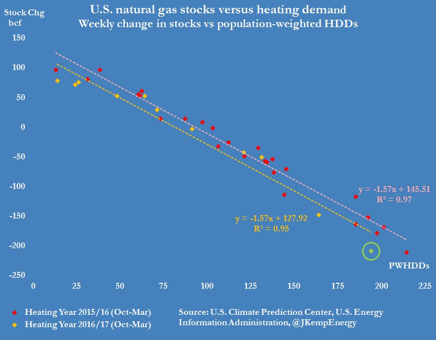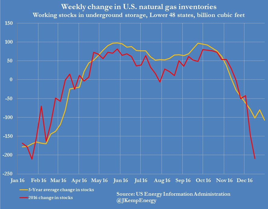 U.S. NATURAL GAS STOCKS drew heavily (-209 bcf) even given high level of heating demand (194 PWHDDs) and more heavily than in 2015pic.twitter.com/QhtdHaJKzE