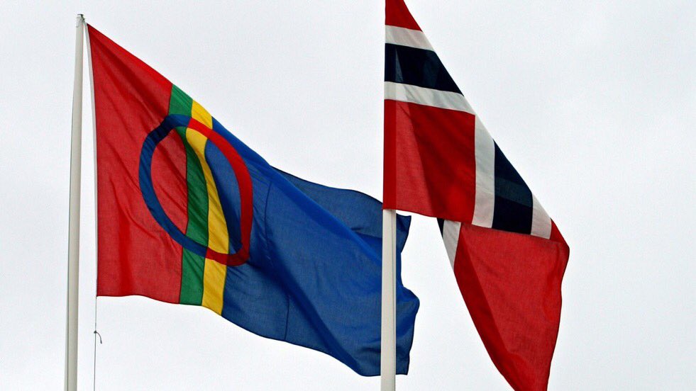 Norway has two peoples. The Sami people live across borders between Norway (biggest population), Sweden, Finland, and Russia, with own flagpic.twitter.com/0Fq1EXIjED