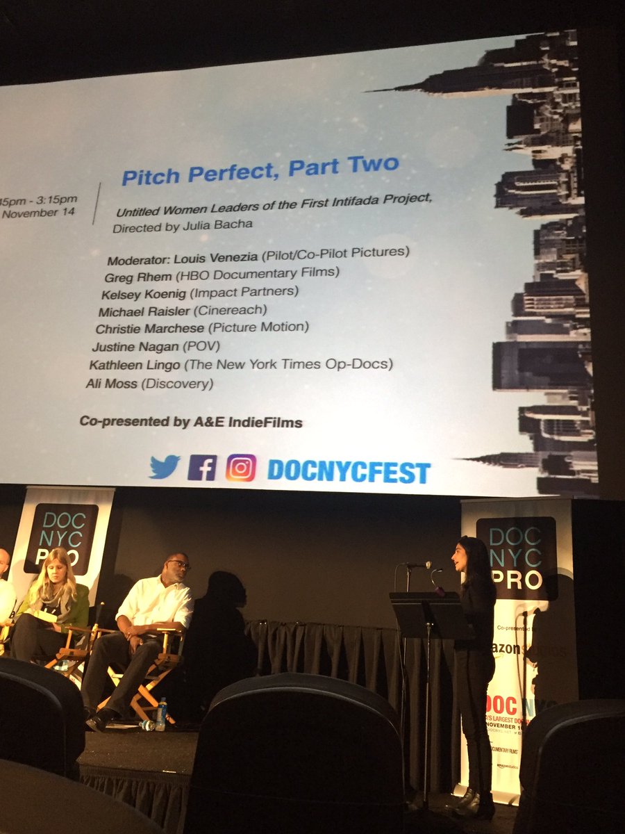 14. Our Creative Director pitching our forthcoming film on women leaders of the First Intifada at