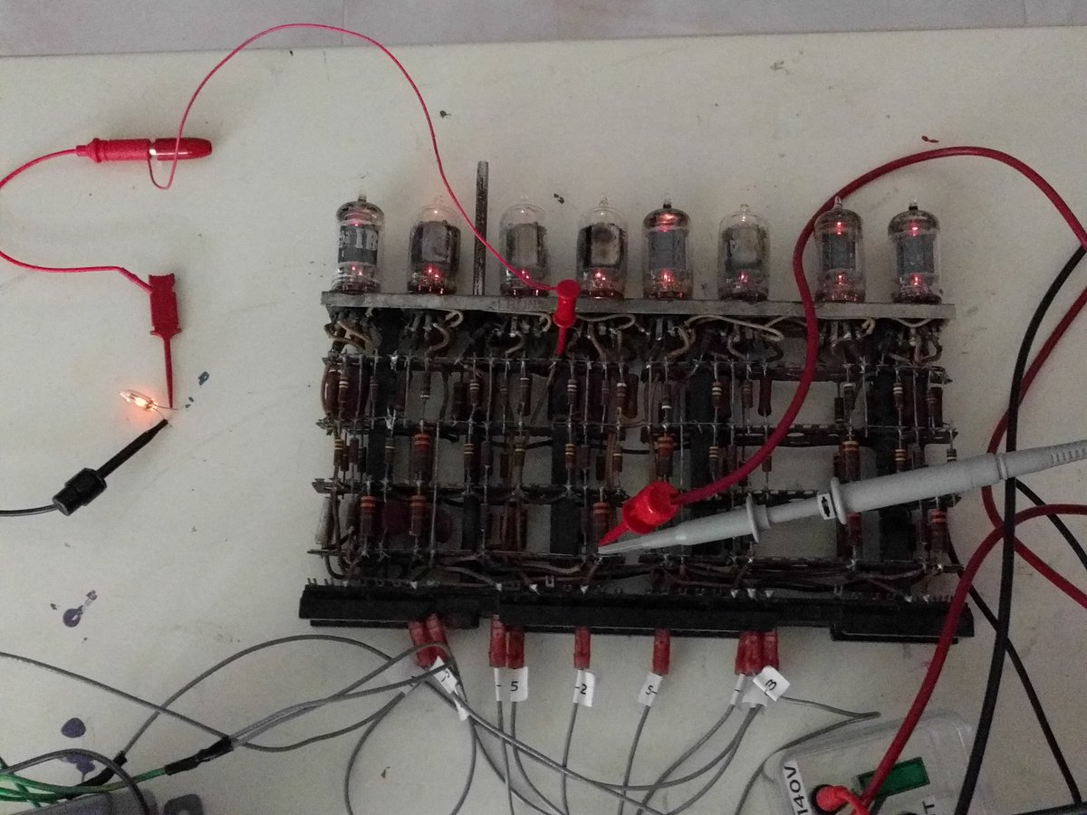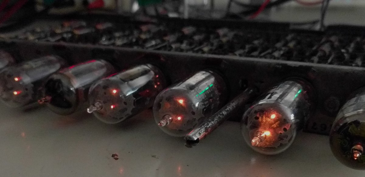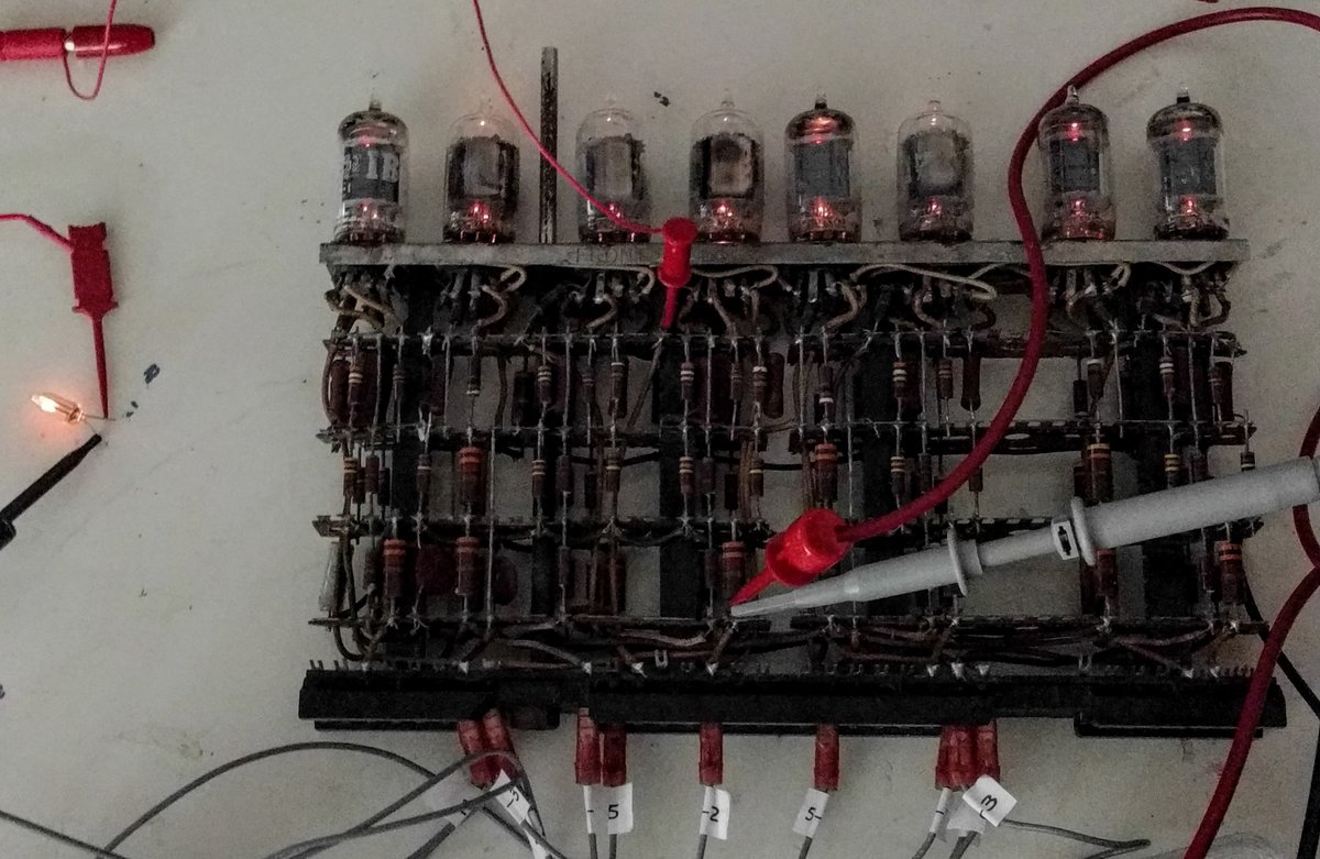 We powered up a tube module from a 1950s IBM 705 mainframe. It contains 5 signal debounce circuits. CuriousMarc's video shows it in operation, cleaning up pulses: https://youtu.be/zOlI1_i2HwQ pic.twitter.com/OKYEgrijGC