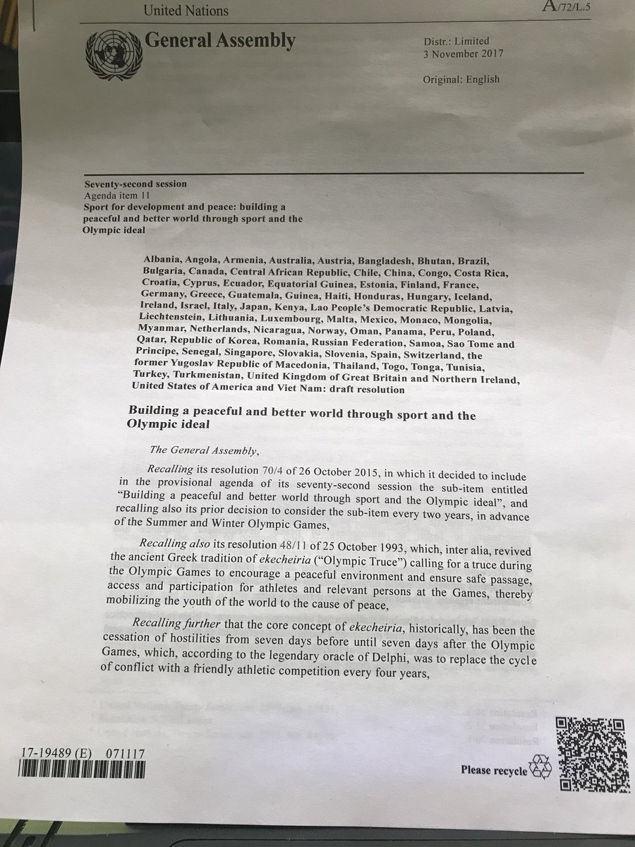 Korean Official from Olympic committee introduces resolution on Olympic ideal. .