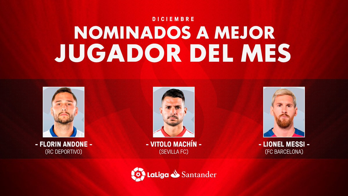 19. Andone ⚽️⚽️⚽️ + 👟👟 Vitolo ⚽️ + 👟 Messi ⚽️⚽️⚽️ + 👟👟 ¿Quién se llevará el Premio al Mejor Jugador del mes de Diciembre en ?