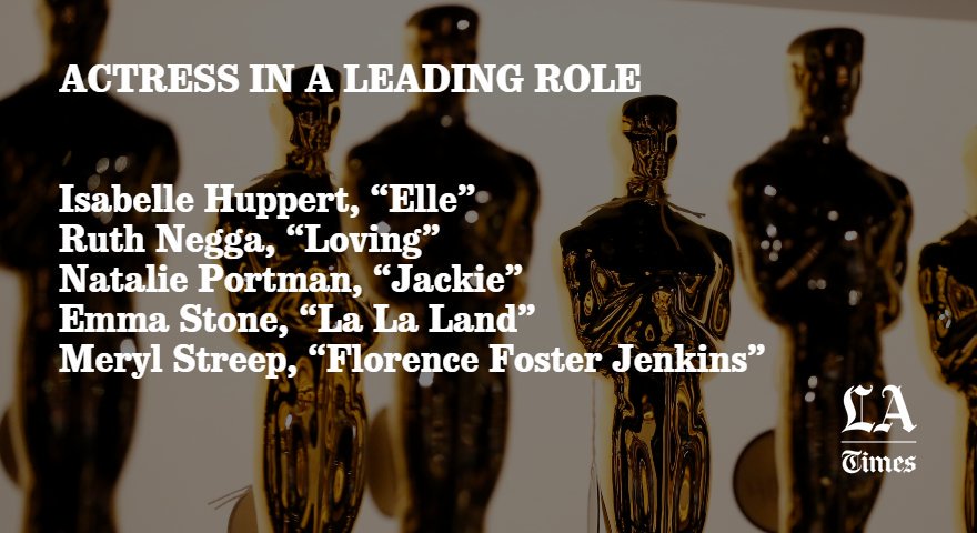 The Oscar nominees for actress in a leading role: http://lat.ms/2jszKwQ pic.twitter.com/Z4xyLUeBeb