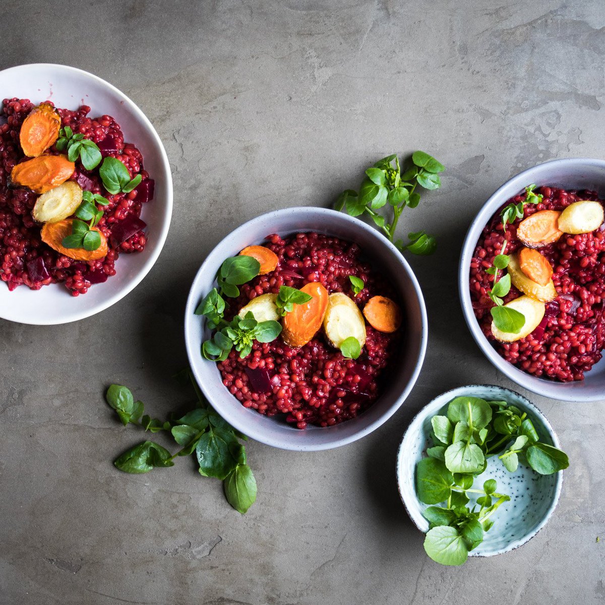 Beetroot Barley Risotto with Roasted Carrots http://bit.ly/2sedTg2