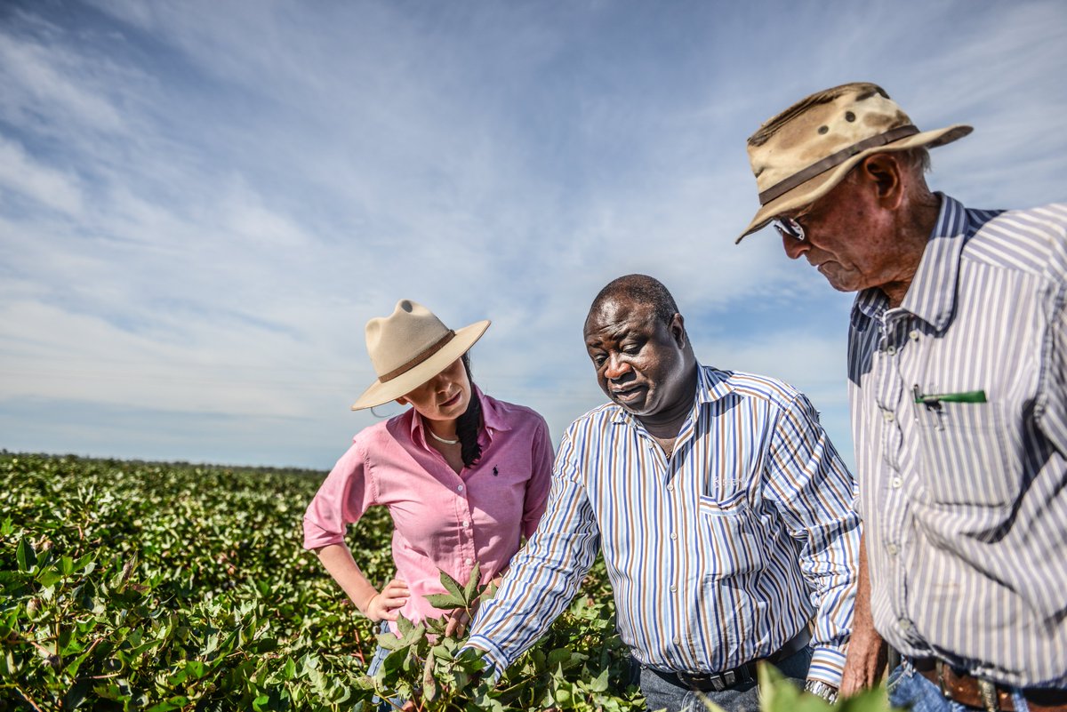 #agday, we celebrate the contribution of#cotton RD&E to our world-leading industry. Pictured: pioneering#cotton grower Vic Melbourne, his granddaughter & young farming champion@lehmann_jess & leading industry researcher Dr Robert Mensah (photo by@ShannaKWhan).pic.twitter.com/avk1LTQS5n