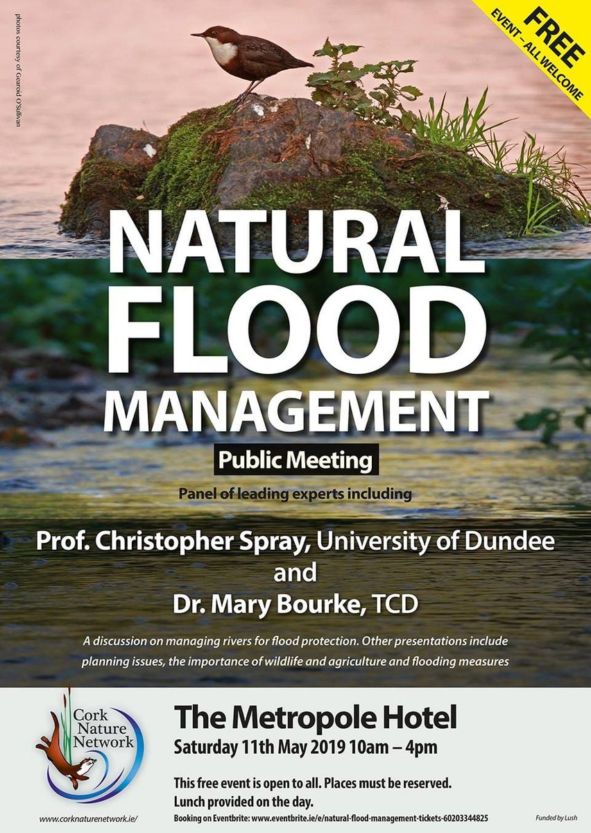 Next Saturday at 10am there will be a Natural Flood Management Public Meeting at The Metropole Hotel on MacCurtain Street This event has been organised by the Cork Nature Network Free Admission, All Welcome