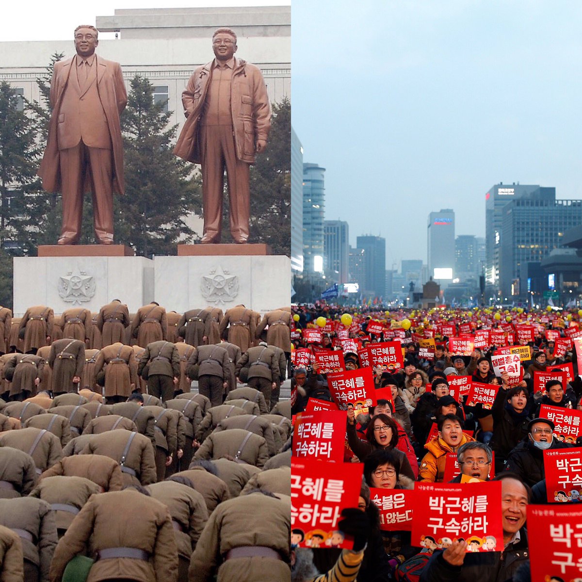Two Koreas, same day. In NK, soldiers bow to dead dictators. In SK, citizens peacefully protest against their president. Dec 17, 2016.pic.twitter.com/m97qAbZpF7