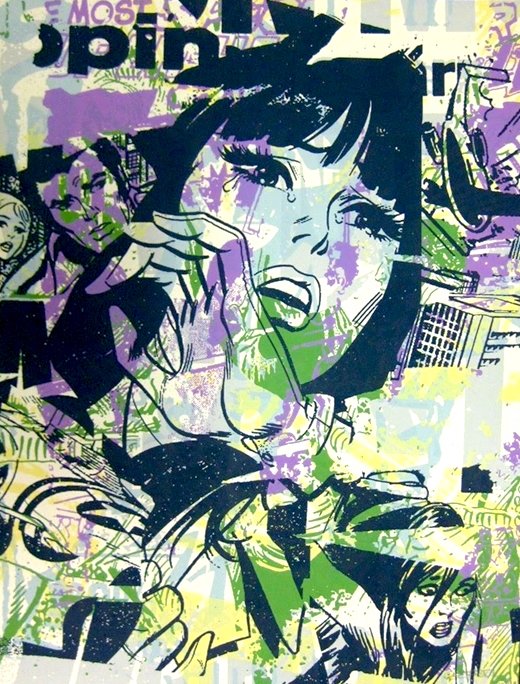 New paintings and prints by Zach Schrey of the Chicago printmaking collab Pop!nk now at