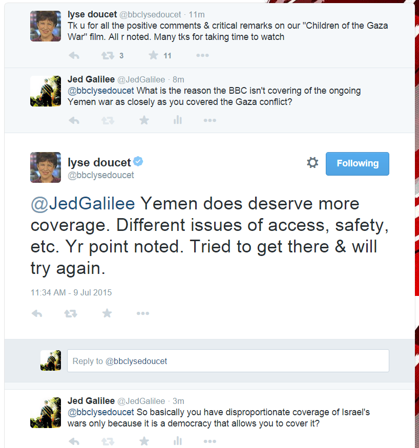 BBC Reporter explains her disproportionate coverage of Israel vs Yemen war: