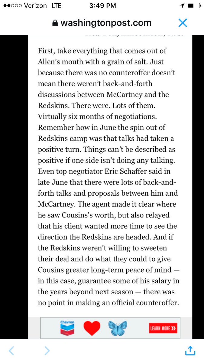 Skins QB tells his 1st choice is 2B w long-term. Says he's not irked by details Allen released on contrt
