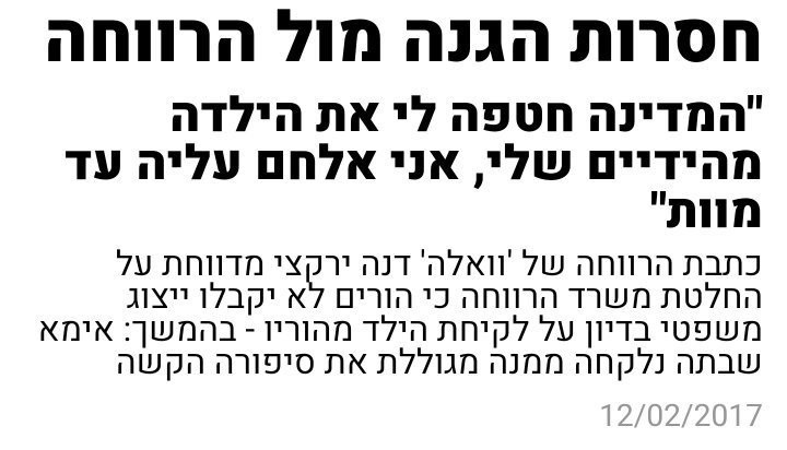 גם אם נקרא לזה בשם 'מדיניות רווחה' זו עדיין חטיפת ילדים מהוריהם. האזינו: http://goo.gl/JNy35P