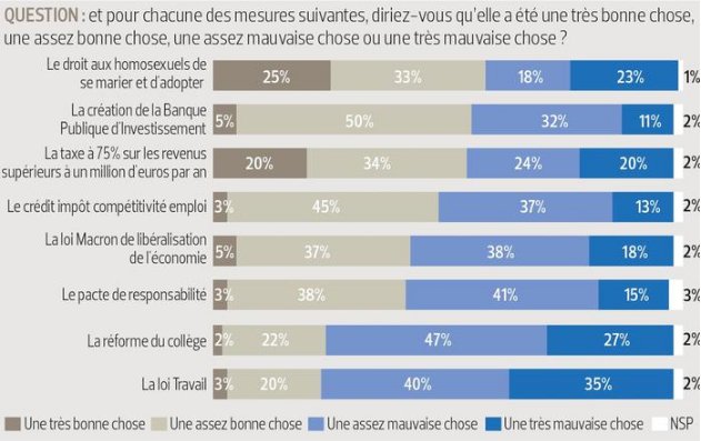 @opinionway sur le bilan de Hollande Mariage pour tous: "Bonne mesure" pour 58% des sondés. Loi Macron: 42% Loi Travail: 23%pic.twitter.com/EXTaI0ECrE