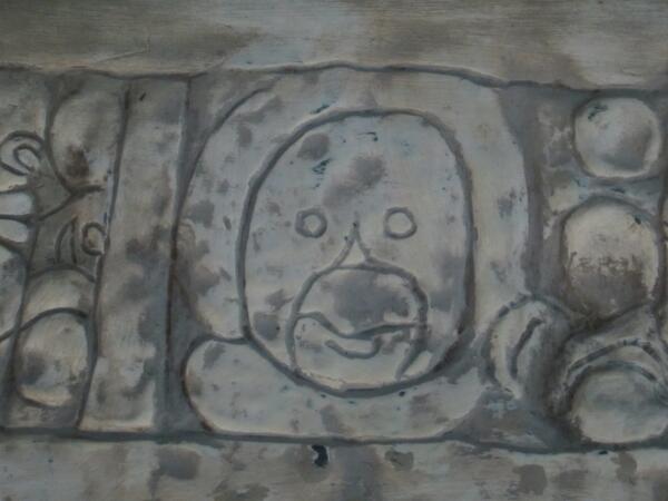 Mystery solved! That face! simpson on marble sarcophagus of king K'inich Janaab' Pakal in Palenque