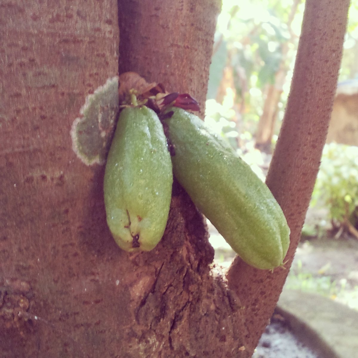 Bimli fruits growing in the garden. Makes a flavourfull tangy curry.