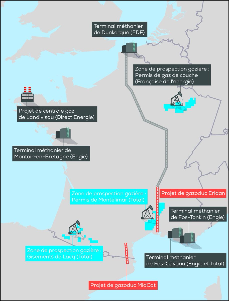 La France est directement concernée par cette ruée sur le gaz, avec des projets de gazoducs comme MidCat et Eridan