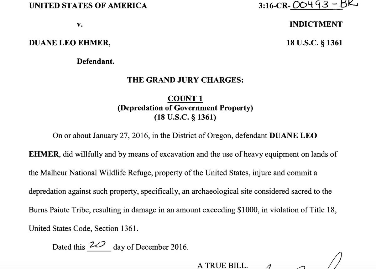 15. As expected, new indictment filed against def. Duane Ehmer for depredation of govt. property: