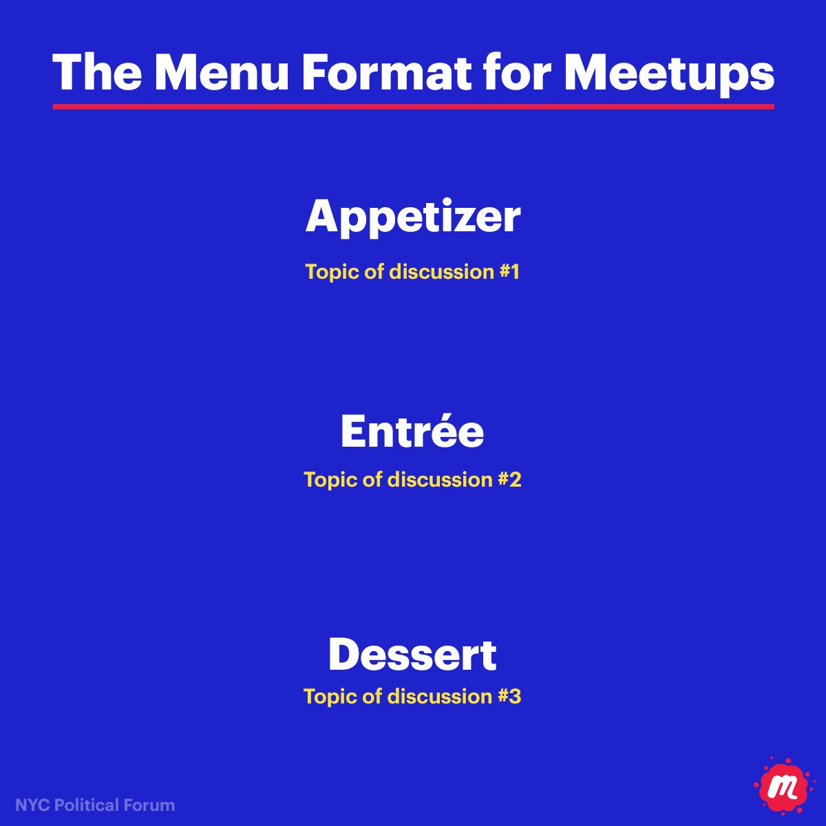 6. The organizer formats his Meetups like a menu with 3 distinct parts. What's your ?