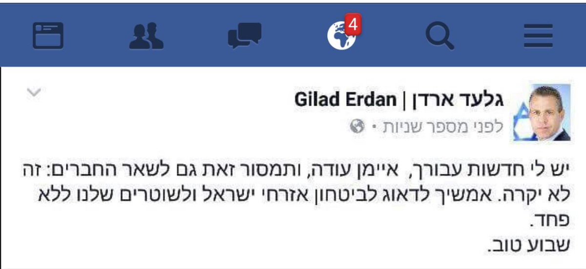 השר לבטחון פנים מגיב לאיימן עודה אוהבים אותך השר ארדן ומחזקים את ידך. שבוע טוב.