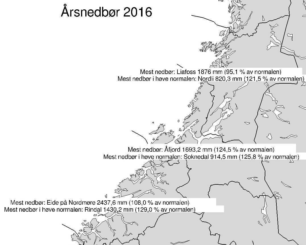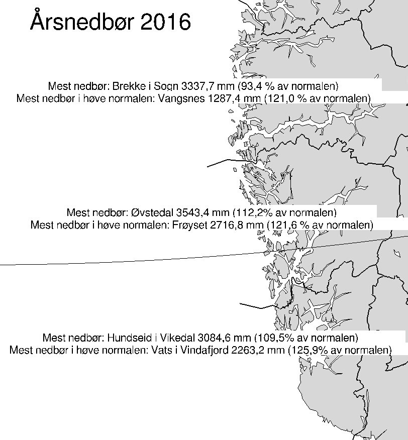 Årsnedbøren 2016 for