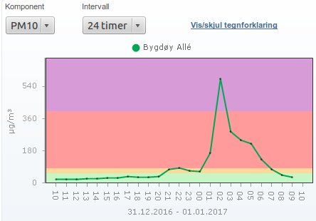 #Oslo og#Akershus nyttårsnatta. Mye svevestøv fra fyrverkeri i sentrum. Graf fra http://luftkvalitet.info pic.twitter.com/Hmx1JHWErB