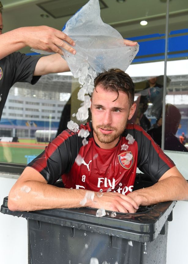 لاعيبة الارسنال وحمام التلج بعد التدريب