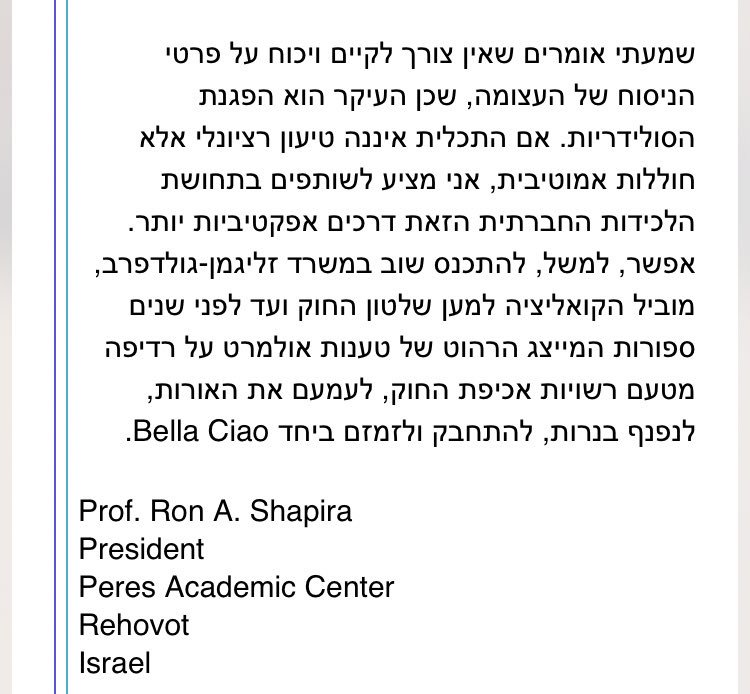 טקסט נפלא של פרופסור רון שפירא מתוך התכתבות פנימית של מרתים בכירים למשפטים: מדוע סירבתי לחתום על העצומה נגד מהלכי החקיקה הצפוייםpic.twitter.com/xnSwJ0oEtI