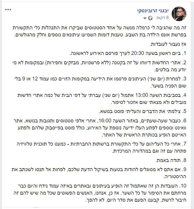 כמה מילים לכרמלה מנשה, עורכי וואינט, עיתונאים אחרים וכל מי שטען ל"פילוג, הסתה ושקרים" על הטענות כלפי התקשורת.pic.twitter.com/7WgYpZ3oSe