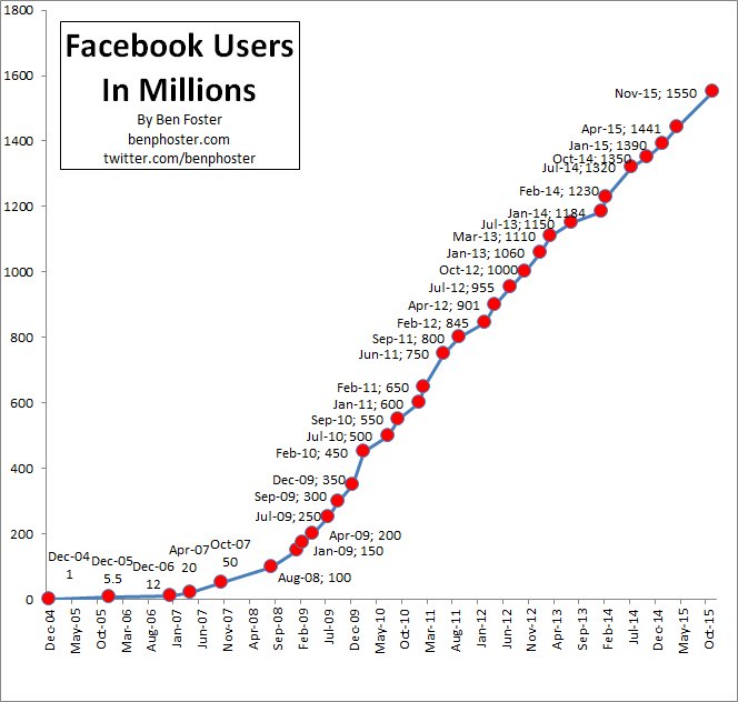 12 years ago today Facebook had 1 million users. Today it has 1.79 billion. http://bit.ly/2iMT5MG pic.twitter.com/YPh5gLdY9S