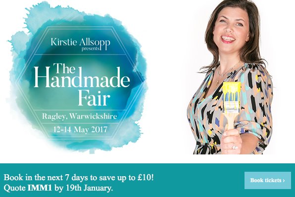 @HandmadeFair tickets by 19/01 & save £££! Use code IMM1 on Full Experience (£5 off) or VIP (£10 off ) tickets http://www.thehandmadefair.com/ragley pic.twitter.com/u6wTyWYEhQ