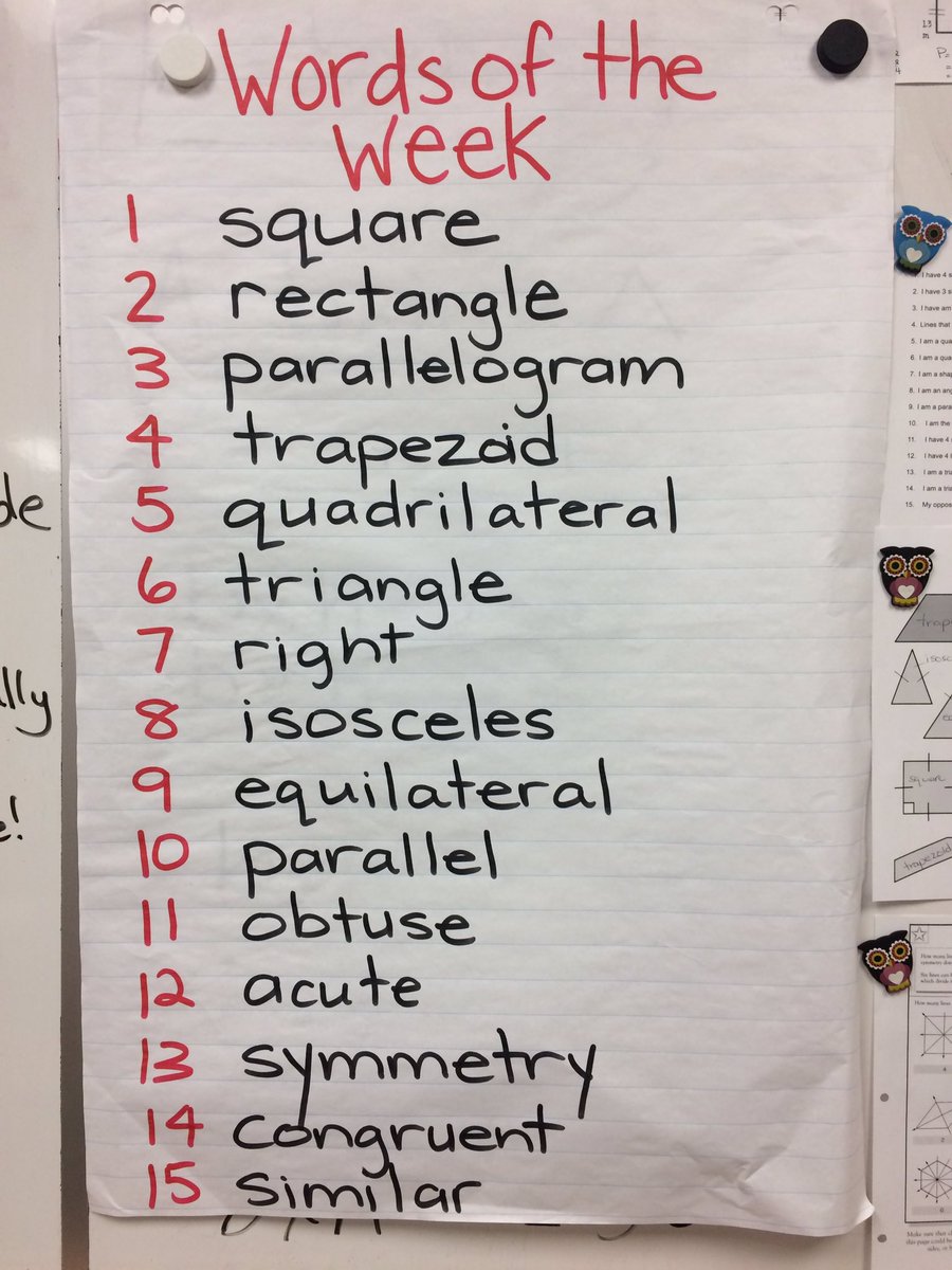 Our words of the week come from different parts of the curriculum- last week from health & read aloud. This week from math.