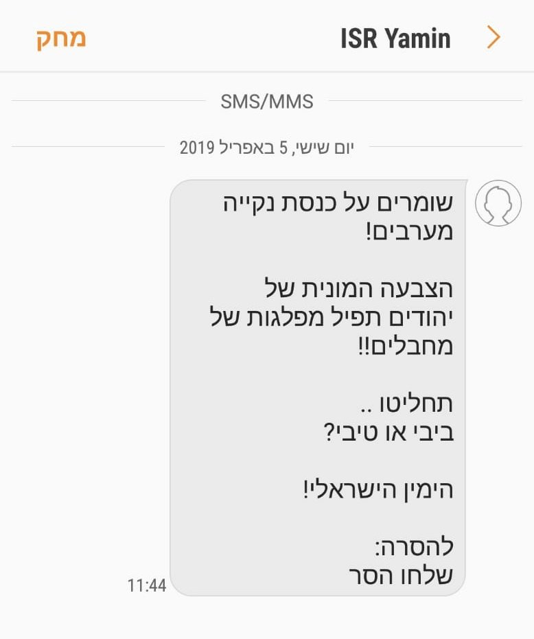 הזוהמה התחילה עם סמס מכוער למצביעי ימין. חבורה של גזענים מסריחים שחוץ מהפצת שנאה ורעל אין להם מה להציע, וזה רק ילך ויחמיר. מול כל החושך והשקרים האלו יש לנו הזדמנות ביום שלישי להחזיר את האור ואת האמת. זה בידיים שלנו.pic.twitter.com/hUfx1ZjIHv
