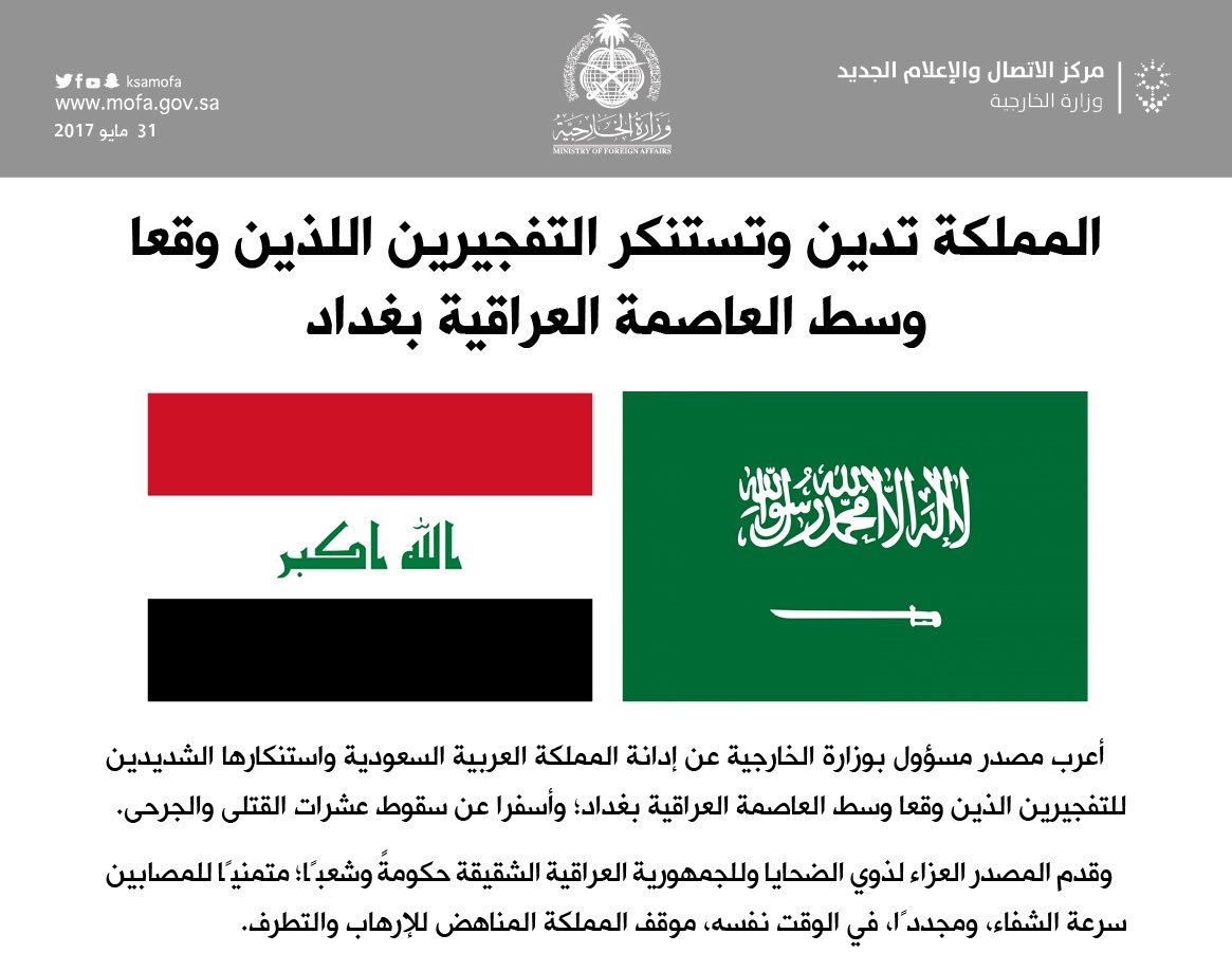 #وزارة_الخارجية حول التفجيرين اللذين وقعا وسط العاصمة العراقية#بغدادpic.twitter.com/Sblx5q6UBj
