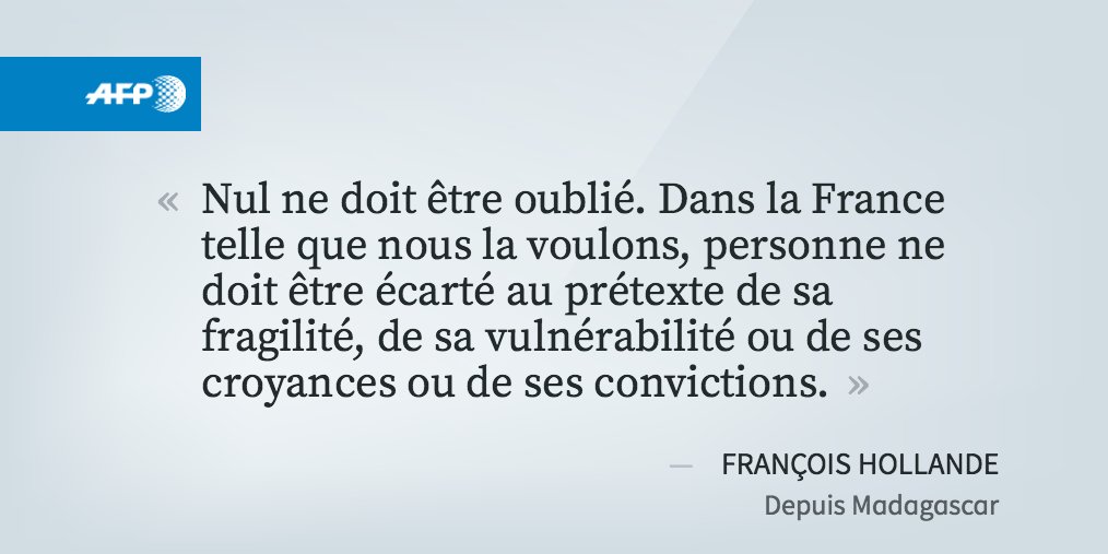 Depuis Madagascar, Hollande appelle les Français à "se rassembler" http://u.afp.com/43Vc