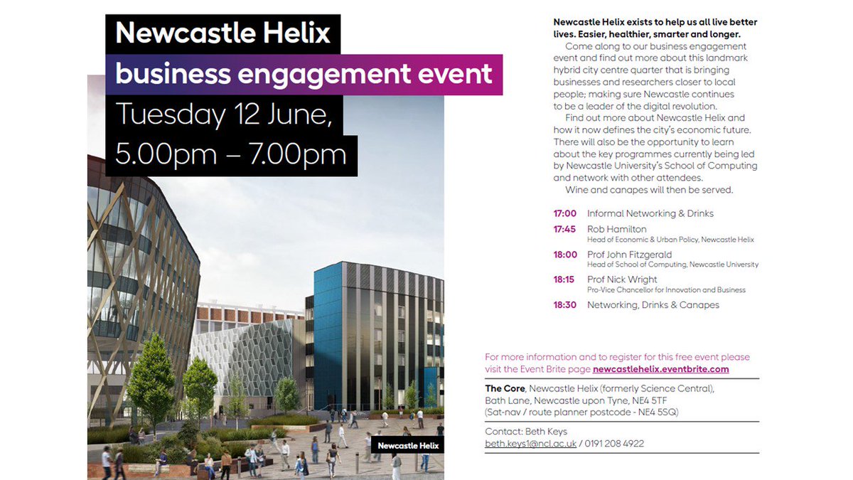 Part of our Open Day next week is dedicated to businesses. 12 June. 1700 - 1900hrs. The Core. Learn about our landmark hybrid city centre quarter, bringing businesses, researchers and people together. http://newcastlehelix.eventbrite.com RT