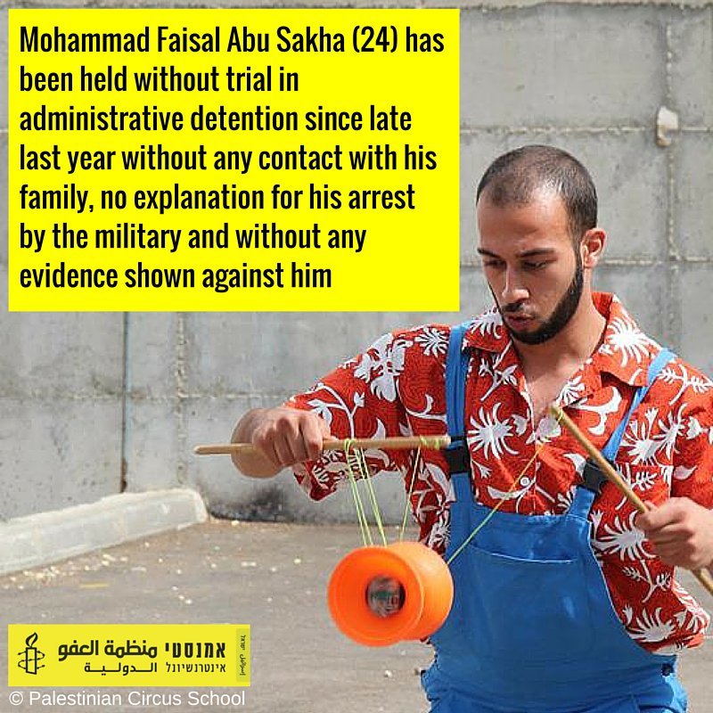 Join the call for the release of the Palestinian circus performer Abu Sakha > http://bit.ly/1UtbPfX