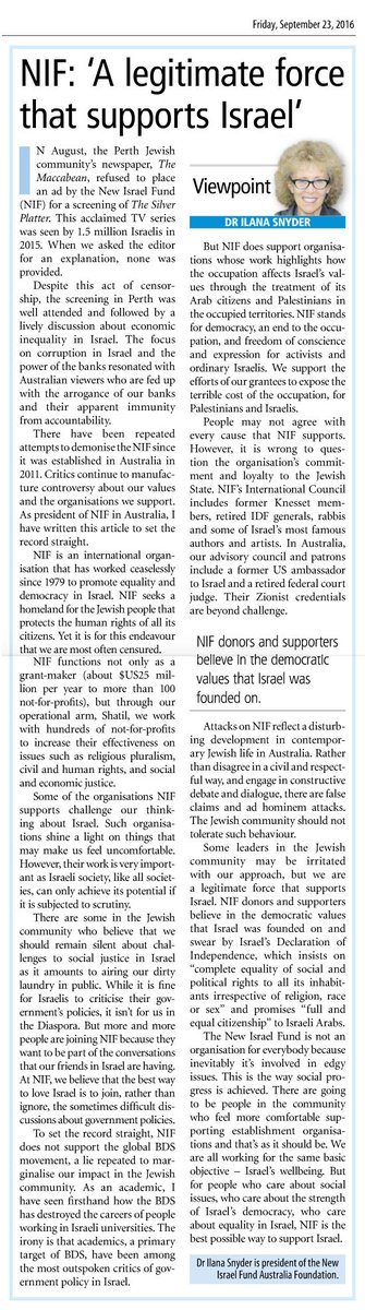 Have you seen Perth-born Israeli Mike Benn’s letter to the Maccabean about the censorship of NIF ads? http://www.nif.org.au/mike_benn_letter_to_the_maccabean …