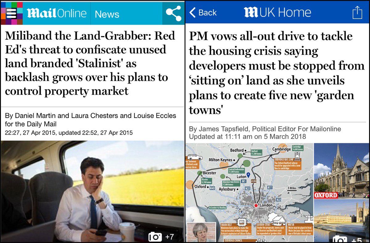 COMPARE AND CONTRAST: How the Daily Mail reports on the same house building policy, depending on if it’s a Labour idea or a Conservative ideapic.twitter.com/k0tosi6Unm