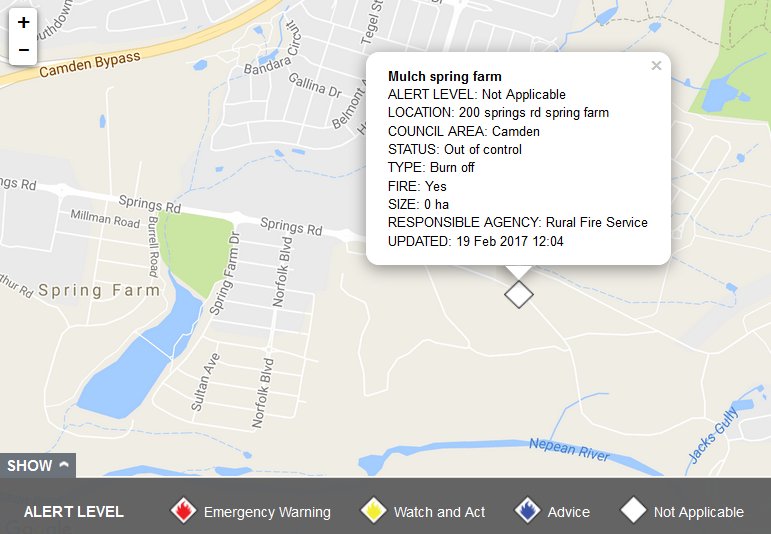 Crews on scene at mulch pile burn near Springs Road, Spring Farm. No threat to properties however smoke may be visible in the area.
