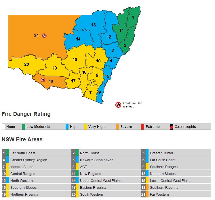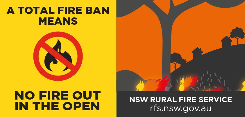 A Total Fire Ban is now in force for the Far Western & Southern Riverina areas due to hot and windy conditions.