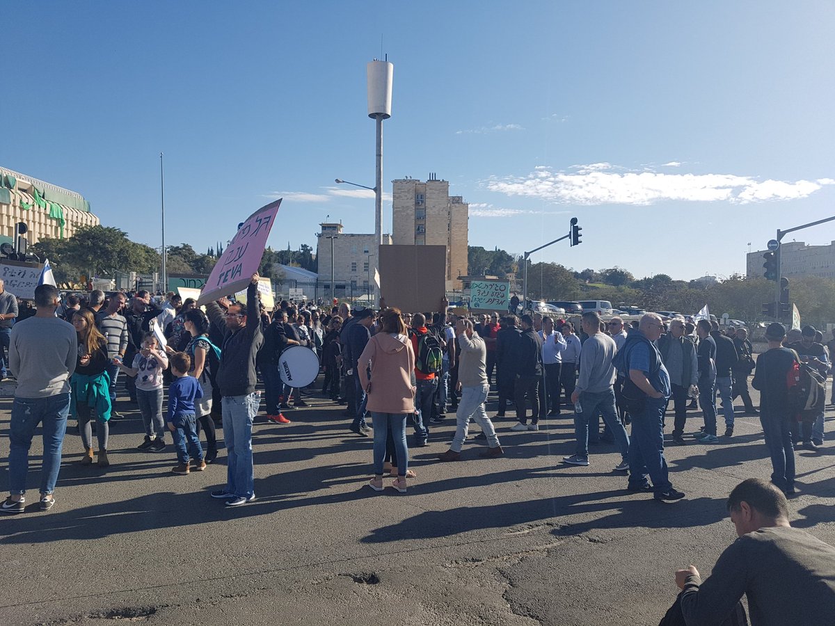 מוקד הפגנה שני- בין האוצר לכנסת. קוראים לכחלון להתעורר "אתה מתעסק עם סלולר, מתעסק עם טלוויזיות. תתעסק עם נשמות טהורותpic.twitter.com/vQQg3UZnsT