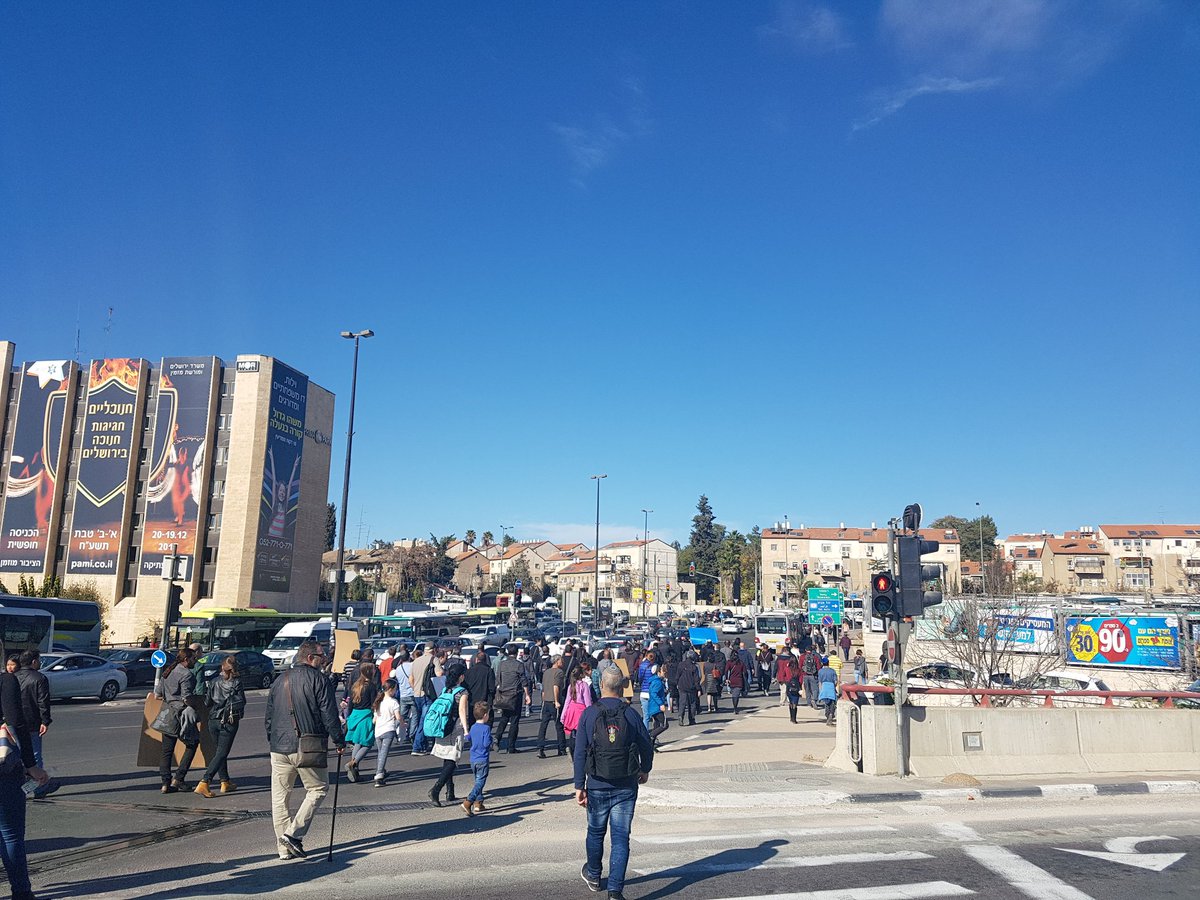 עובדי טבע חוסמים את הכניסה לעיר מתחת לגשר המיתרים. משום מה צועקים "אנחנו מאמינים בני מאמינים" מה שקצת מזכיר את הפגנות החרדים הקבועות פה.pic.twitter.com/JM6IY04B2q