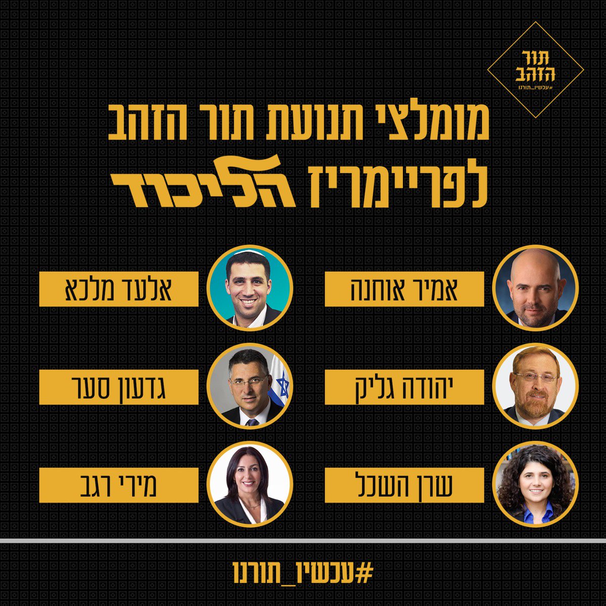עשרות פעילי תור הזהב בחרו את מומלצי התנועה לפריימריז בליכוד. התוצאות לפניכם. בקרוב - מומלצי התנועה לפריימריז בעבודה.pic.twitter.com/qoPtteRA9w